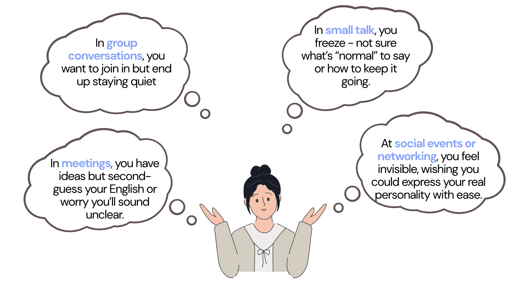 Your English is good - even fluent - but you’re a perfectionist who overthinks every word, worried you’ll sound “off,” “rude,” or “not native enough.”
