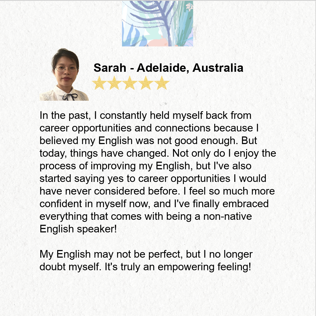 Each affirmation is a message I’ve carefully crafted for myself over the years - something I wish I had years ago when I was overthinking my English in fast group chats and big meetings. The calm, grounded voice I needed back then is now in your hands.